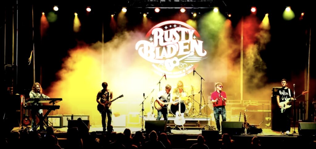 Rusty Bladen and The Livin’ Daylights: Rusty Bladen with Tyler Brindel (drums) and Jackson Bladen (keyboards). The festival band includes Marty Miller and Neil Bladen (bass), Seth Perkins (guitar), and Michael Fortunato (sax).